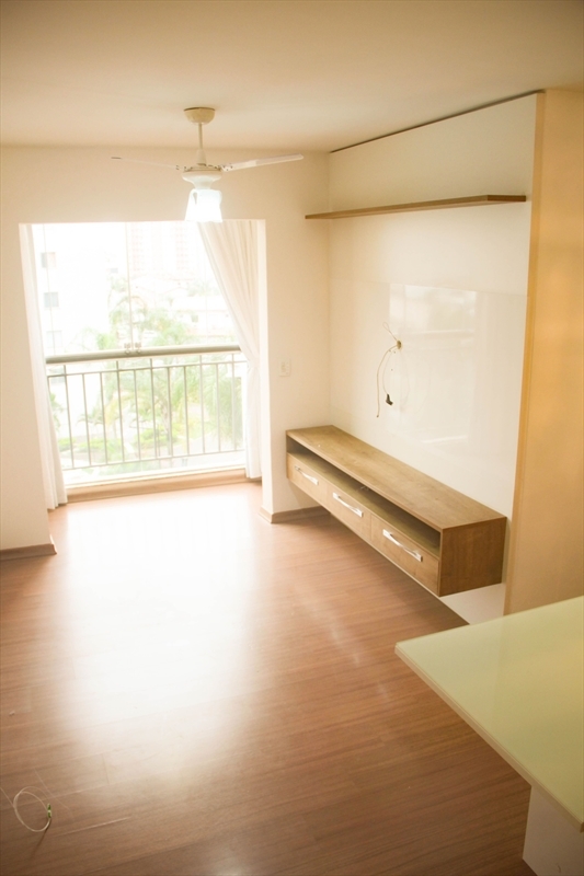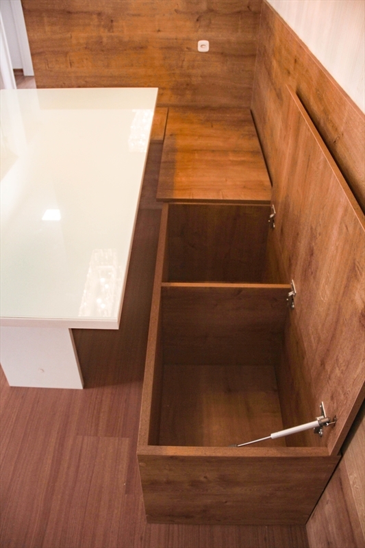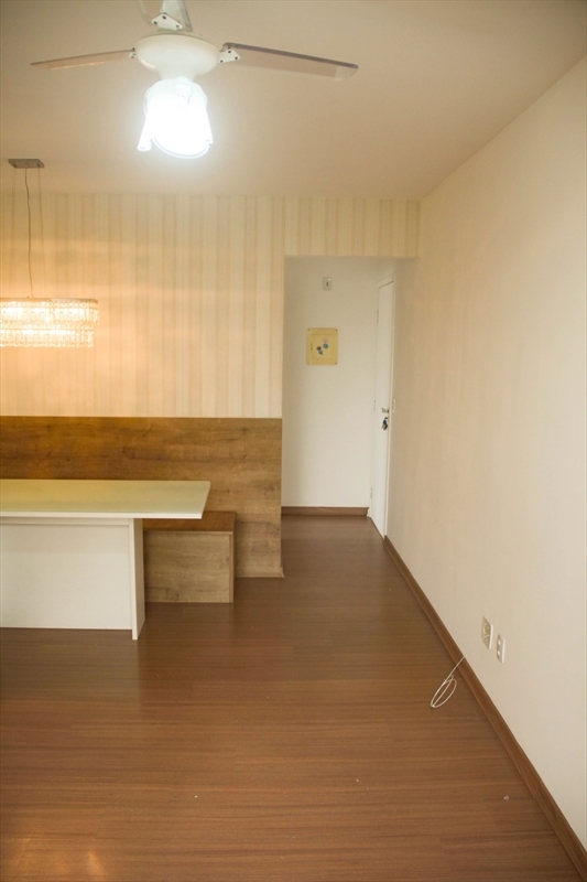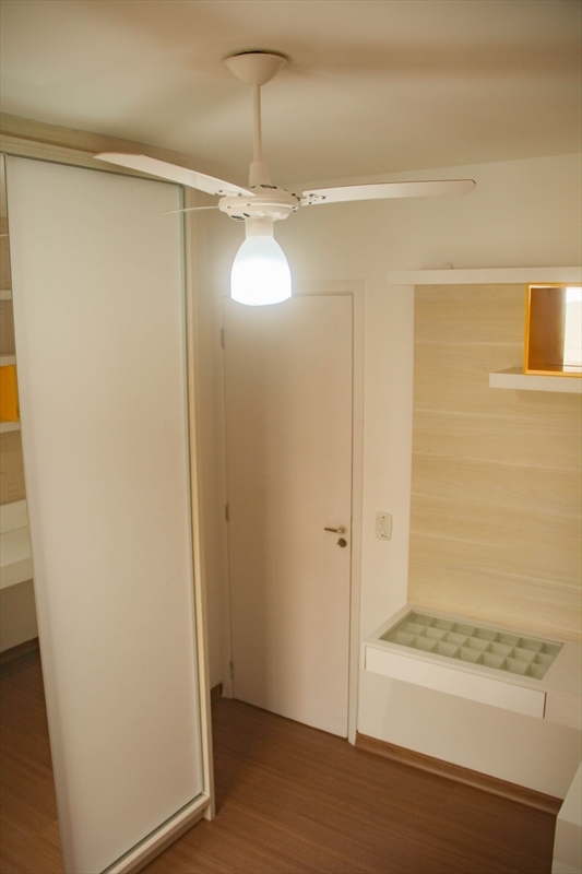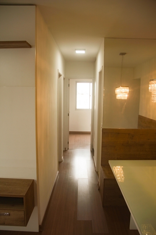 O apartamento no bairro Colina de Laranjeiras com 65m², 3 quartos sendo 2 com armários modulados, sala com painel, mesa de jantar, espelho e bancos modulados, cozinha com armários modulados integrado com área de serviço e 1 banheiro com armário.