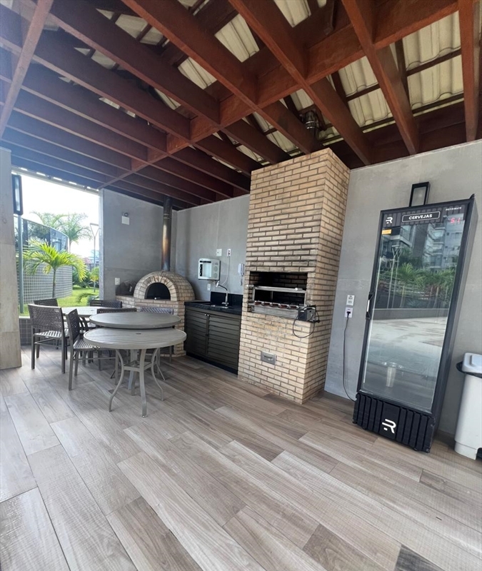 Ambiente de sala e cozinha integrados, marcenaria na cozinha, área de serviço, varanda gourmet e banheiros.