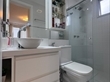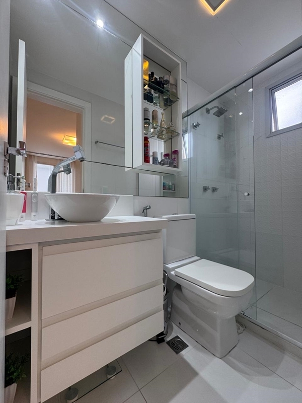 • Banheiros com nicho no box, acabamento fino, LED interno e cuba esculpida no banheiro social
